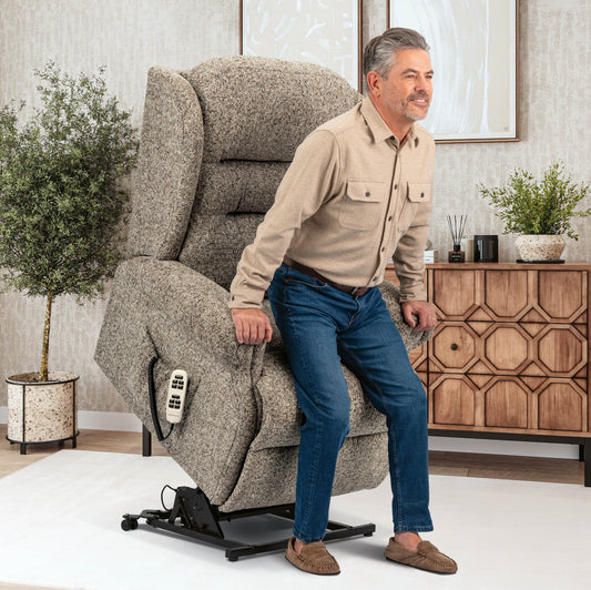 Sherborne Newbury Knuckle Dual Motor Fabric Riser Recliner Armchair With Lumbar & Headrest Adjustment Option VAT FREE