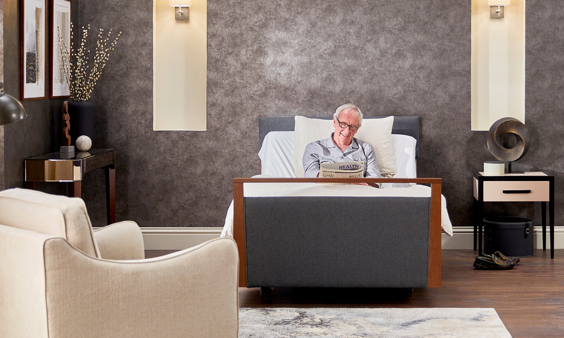 The Signature Upholstered is a practical and stylish profiling bed to support care needs at home.